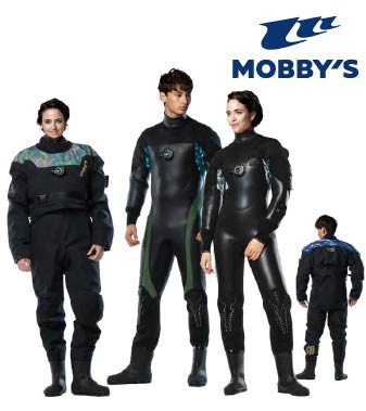 MOBBYSブースにて最新モデルのドライスーツ・アクセサリー類を展示。