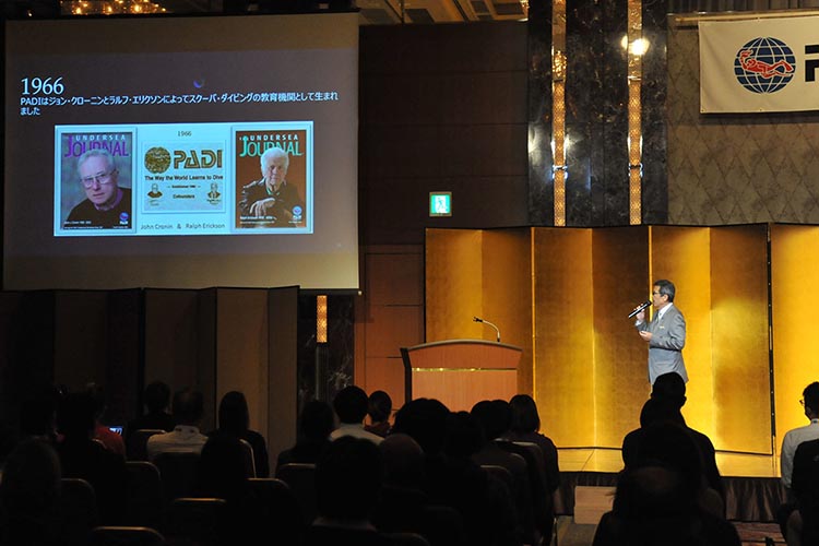このシンポジウムでは、全国各地のPADIショップのオーナーやスタッフはもちろんアメリカのPADI本部からPADIワールドワイド社長/COO、PADIジャパン社長、器材メーカー、ダイビング専門誌、外部講師などが集まり、セミナーや2016年度にお客様の為に努力し活躍したお店を表彰する式や懇親会が行われました。